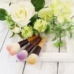 【在庫限り(残りわずか)】【マルチに使える】【さくら色グラデーションの穂先】【箱なし】リーフブラシPurin010(山羊・ポリエステル混合 尖り平)【在庫限り販売終了商品】