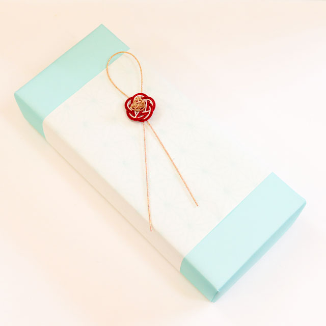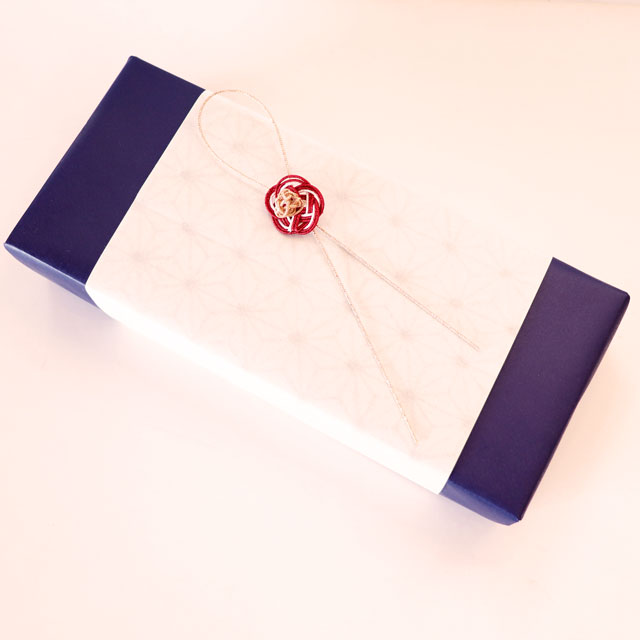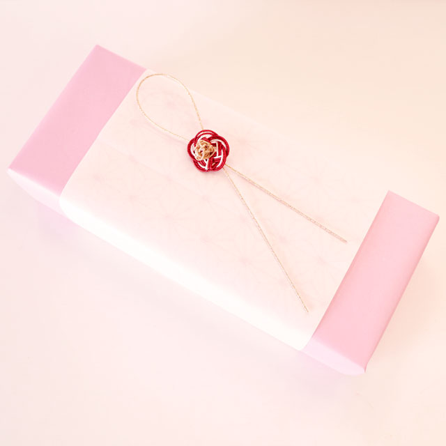 かわいらしい梅結びの水引が目を引く和風のラッピングです。